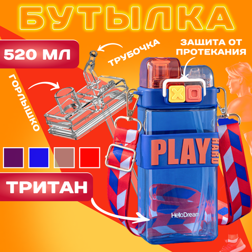 Бутылка для воды спортивная с трубочкой, 520 мл, синий