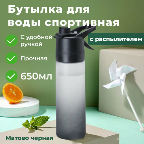 Бутылка для воды спортивная, с распылителем, матово черная, 650мл