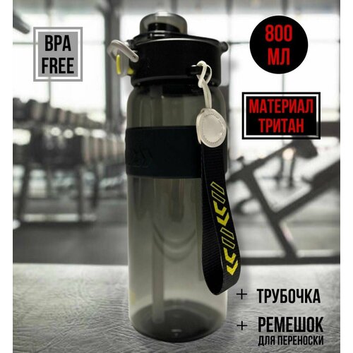 Бутылка для воды спортивная 800 мл черная с трубочкой
