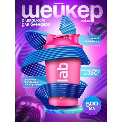 Шейкер VPlab со взбивающим шариком 500 мл. Розовый