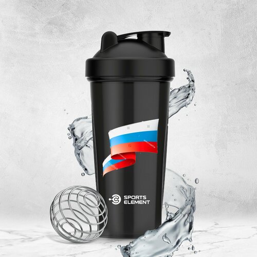 Шейкер для спортивного питания Sports Element "Флаг России" , 600 мл. С шариком