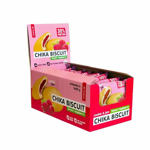 Протеиновое печенье Chika Biscuit (лесная малина) 9 шт по 50г