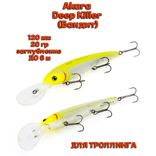 Воблер Akara Deep Killer (Бандит) A148 120мм 20гр заглубление до 6м для троллинга