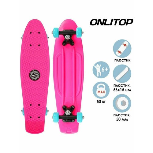 Пенниборд ONLYTOP 56 х 15 см, колеса 50 мм, пластиковая подвеска