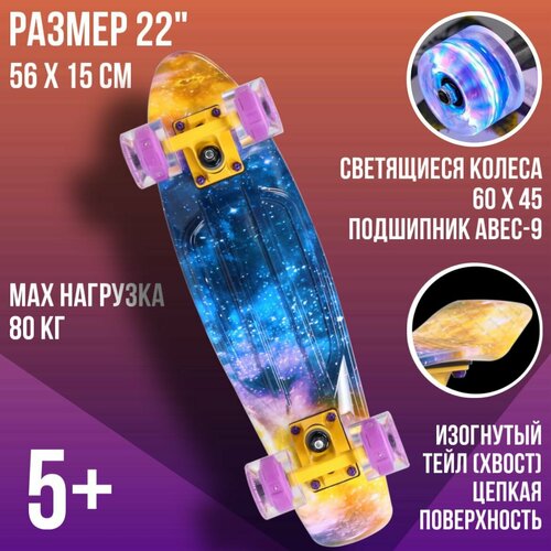 Скейтборд пластиковый (пенни борд) для детей и взрослых с принтом и светящимися колесами Triumf Active Milky Way (млечный путь) 22 дюйма