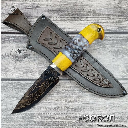 Нож Сокол из ламинированная стали рукоять композит и ножны из натуральной кожи, Кузница Семина официальный производитель