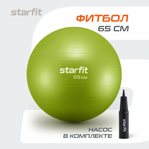 Фитбол STARFIT GB-111 65 см, 1000 гр, антивзрыв, с ручным насосом, лаймовый