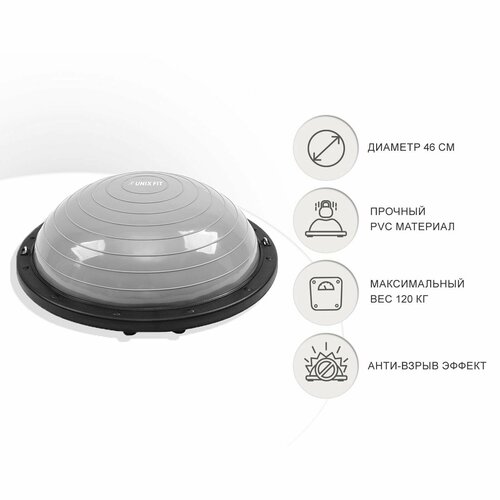 Балансировочная полусфера UNIX Fit 46 Bosu с эспандерами в наборе, cтеп-платформа, до 120 кг. UNIXFIT