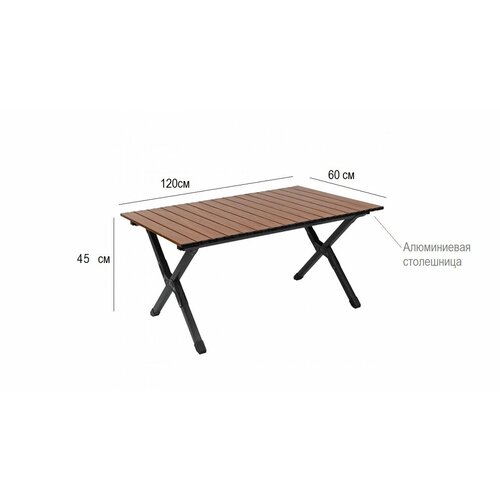 коричневыйНадежный устойчивый стол для рыбалки, охоты, туризма! Изделия имеют надежный и легкий металлический каркас, размер стола 60*90 см, высота 45 см. Столешница реечная складня из алюминия с красивым окрасом "под дерево" Ножки имеют квадратный профиль, что делает изделие устойчивым. Компактные транспортировочные размеры 70*20*18 см. Быстрая сборка/разборка, удобный чехол с ручками для транспортировки и хранения.