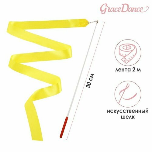 Лента для художественной гимнастики с палочкой Grace Dance, 2 м, цвет жёлтый (комплект из 16 шт)