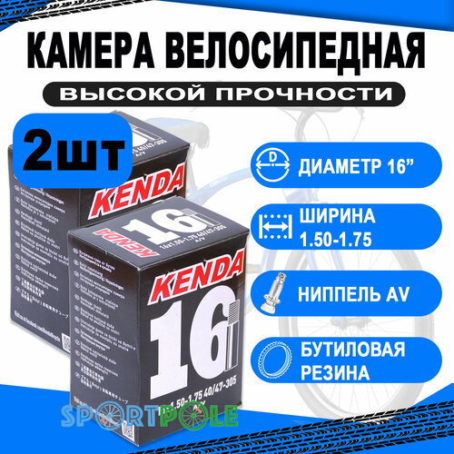 Комплект велокамер 2шт 16" авто 5-511406 "узкая" 1.50-1.75 (40/47-305) для складных вело (50) KENDA