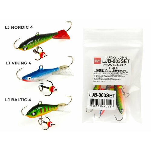 Балансиры Lucky John 3шт набор 3 MIX окуневый 2 с тройниками (LJB-003SET)