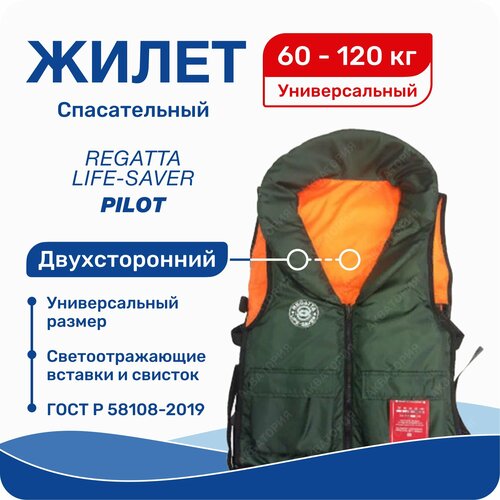 Жилет спасательный двухсторонний Pilot зеленый 60-120 гимс