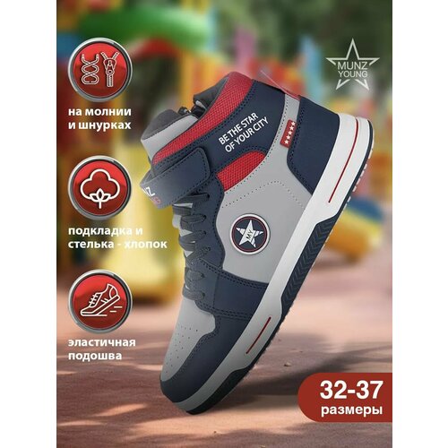 Кеды MUNZ YOUNG Школа 2024, размер 33, серый/синий