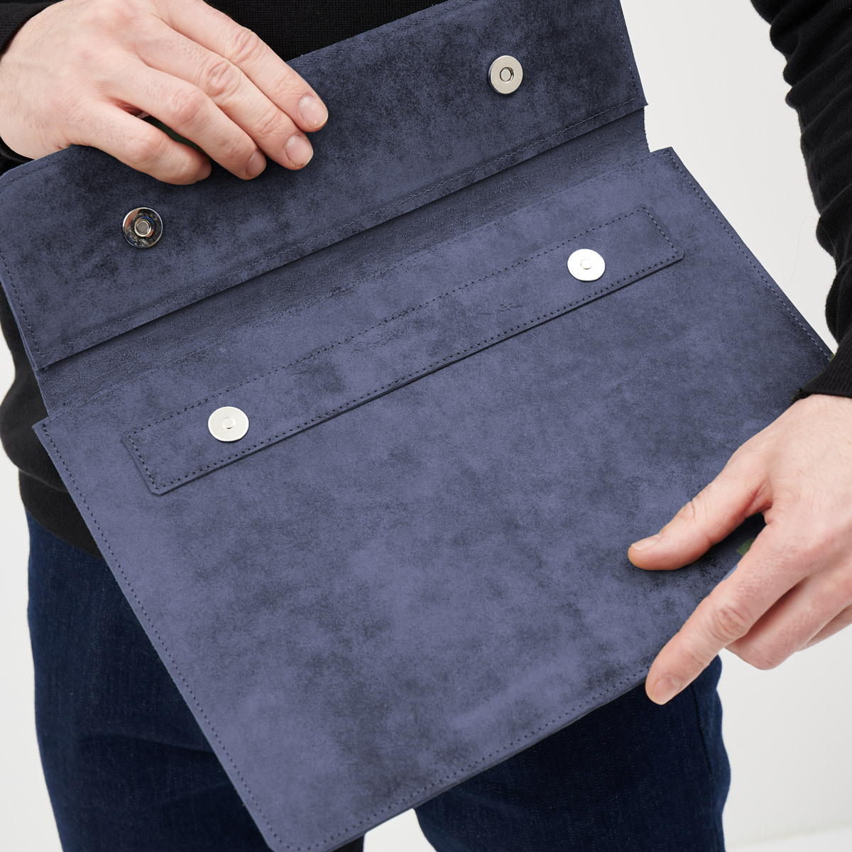 оранжевыйЭлегантный, приятный и лёгкий чехол-конверт-сумка для ноутбука из натуральной кожи КРС Итальянского производства. Больше подходит для самостоятельного использования, его удобно носить в руке, под мышкой, приятно лежит на ладони Внутри вся изнанка кожи спрятана, но на клапане вы всегда можете увидеть натуральную бахтарму кожи. Клапан на двух итальянских магнитных кнопках очень долговечных