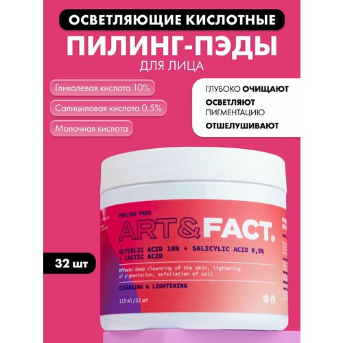 ART&FACT. / Очищающие осветляющие кислотные пилинг-пэды для лица с гликолевой кислотой 10%, салициловой кислотой, 115 мл 101529013664