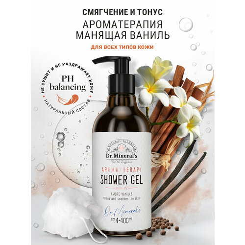 Dr. Mineral's, Смягчающий ароматический гель для душа, очищение и тонус, натуральный уход за кожей, с ароматом манящей ванили, 400 мл 101968727182