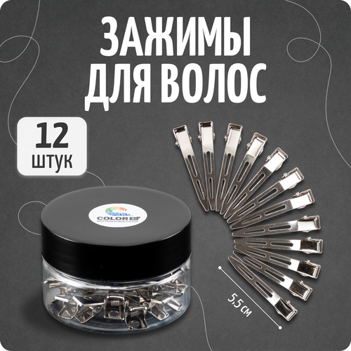 Зажимы для волос, заколки, металлические, 5,5 см 12 шт, COLOR Si 102939655506