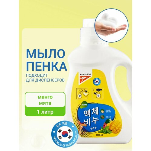 Корейское увлажняющее жидкое мыло пенка для рук Kangaroo Home 1 литр, аромат манго и мята 103641443568