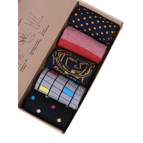 Носки MSCLUB, комплект, 5 пар, размер 25 (38-40), синий, желтый, голубой, бордовый