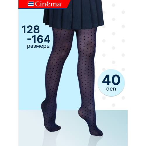 Колготки Cinema для девочек в школу с рисунком в горошек, 40 den, размер 146-152, темно-синий