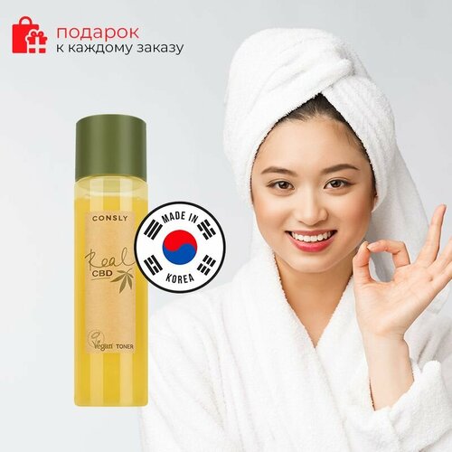 Тонер балансирующий для проблемной кожи с канабидиолом и растительным скваланом, восстанавливает PH баланс, сохраняет ощущение свежести, успокаивает Consly Real CBD Vegan Toner, 150 мл 103711491015