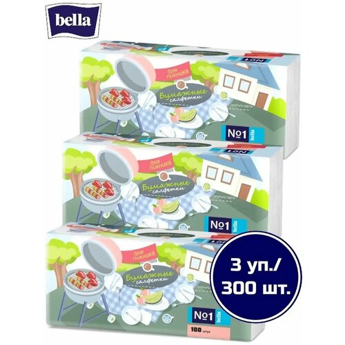 Салфетки бумажные в коробке Bella №1 для пикника, 2 слоя, 3 упаковки по 100 штук 103647248483