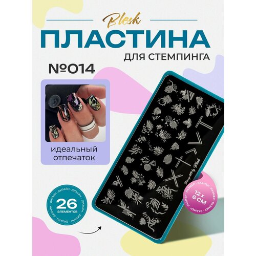 Пластина для стемпинга Blesk "Листья" №014, металл, 6*12 см. 103532088903