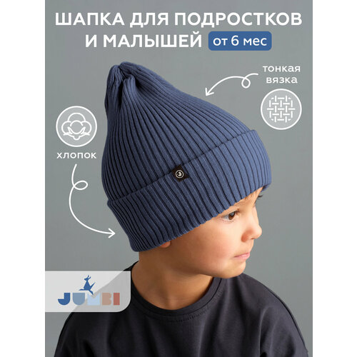 Шапка-бини JUMBI Шапка детская весна лето осень однослойная с отворотом для детей, размер 53-58, пепел