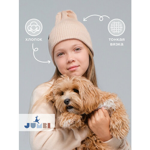 Шапка-бини JUMBI Шапка детская весна лето осень однослойная с отворотом для детей, размер 53-58, сандал