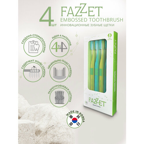 Fazzet многоуровневая зубная щетка с ребристой щетиной и частицами серебра, 4 шт. каждая в индивидуальном футляре 102072874413