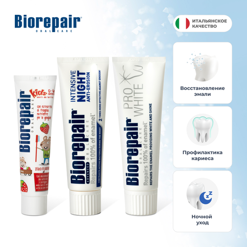 Зубные пасты Biorepair Pro White, 75 мл, Intensivo Notte, 75 мл, Kids (земляника), 50 мл 102674218224