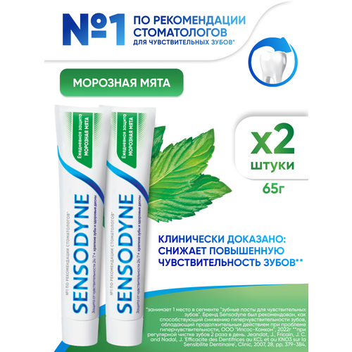 Зубная паста Sensodyne Ежедневная Защита Морозная мята с фтором, 65 г 2 штуки 102047687852