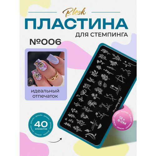 Пластина для стемпинга Blesk "Растения" №006, металл, 6*12 см. 103532088879
