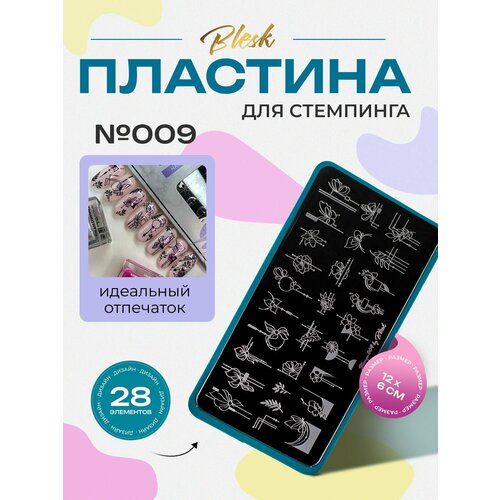 Пластина для стемпинга Blesk "Цветы" №009, металлическая, 6*12 см. 103532088880