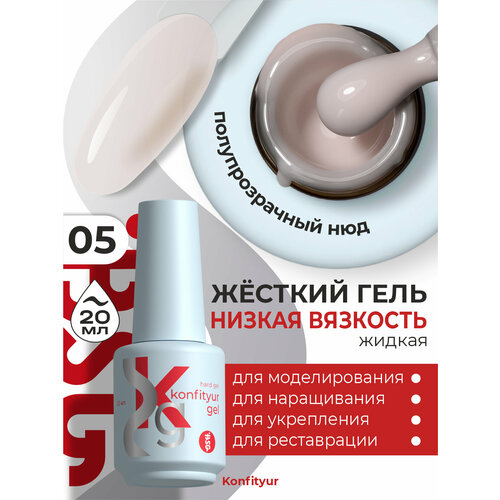 BSG Жёсткий гель в бутылке Konfityur №05 низкая вязкость - Тёплый молочный, полупрозрачный, 20 мл 103252844417