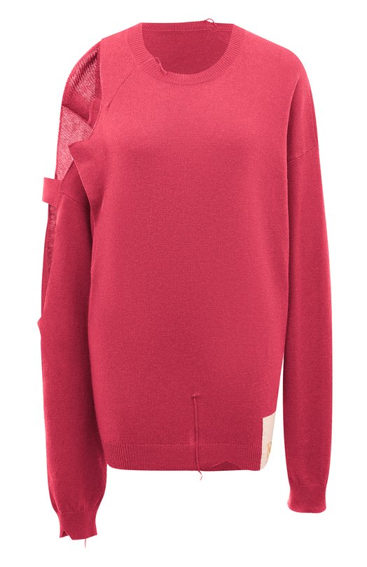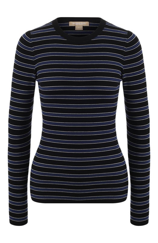 Синий свитер с рукавами реглан выглядит так, словно его надели наизнанку. Такой эффект создают рельефные швы и полосатый орнамент f...