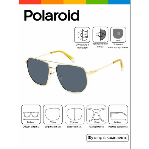 Солнцезащитные очки Polaroid, золотой золотистый, золотой, серый