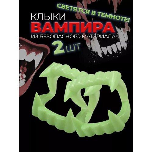 Клыки вампира, зубы накладные светящиеся / Вставная челюсть Воздушный праздник