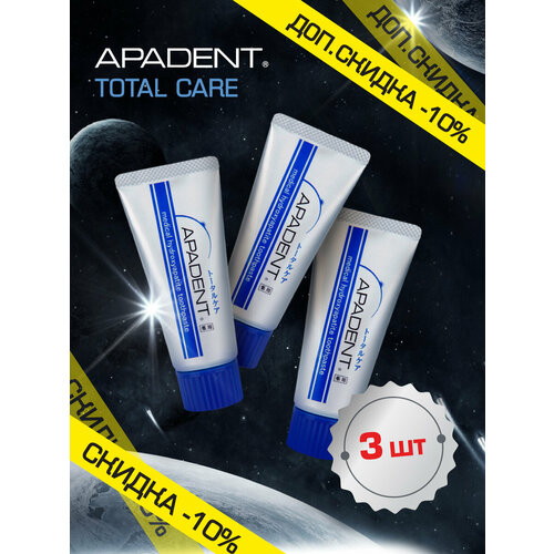 Зубная паста Apadent Total Care против кариеса и зубного налета, реминерализующая, Япония, 60 гр. Набор 3 шт. 103797044374