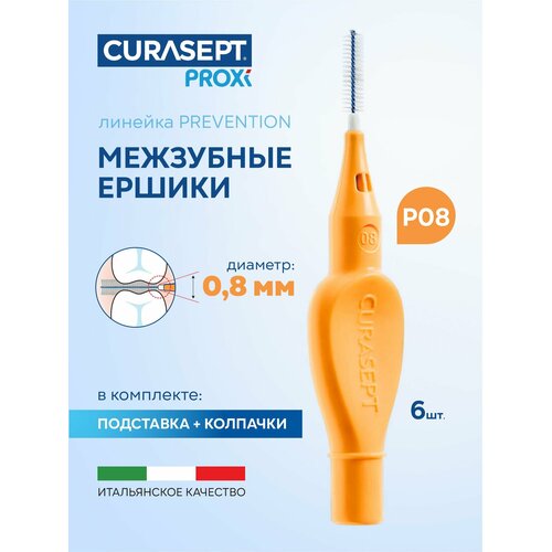 Межзубные ершики CURASEPT Proxi Prevention размер P08 (d 0,8 мм) светло-оранжевые 6 шт, профилактические, Курасепт, Италия 102429072328