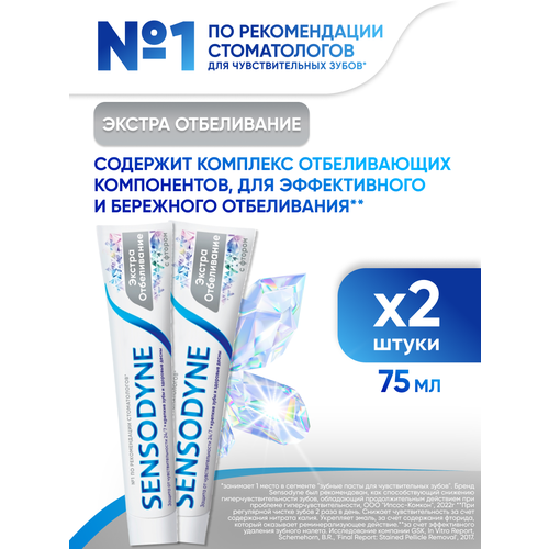 Зубная паста Sensodyne Экстра Отбеливание с фтором, 75мл 2шт 102046769397
