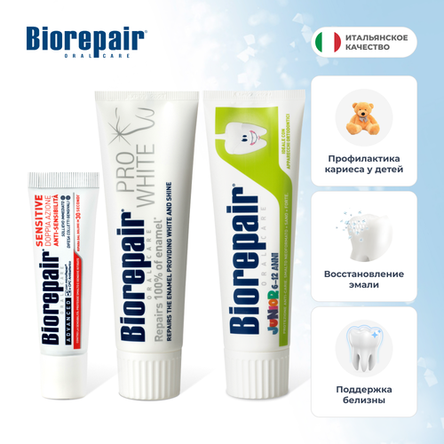 Зубные пасты Biorepair Pro White, 75 мл, Junior, 75 мл, Sensitive Double Active, 15 мл 102674227637