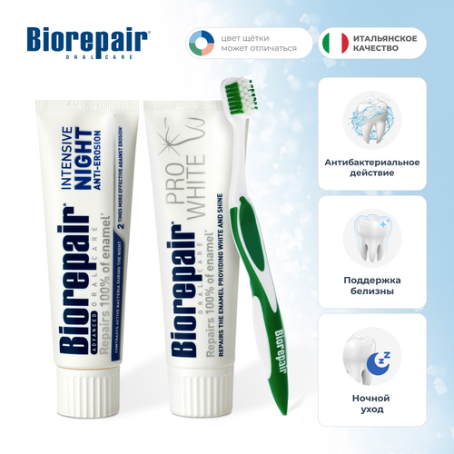 Зубные пасты Biorepair Pro White, 75 мл, Intensivo Notte, 75 мл, щетка Total Protection средней жесткости 102674208554
