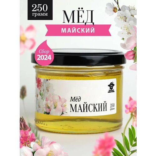 Майский мед натуральный 250 г в стеклянной банке, сбор 2024 года, свежий, сладкий подарок, жидкий