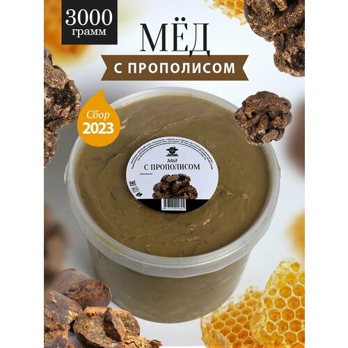 Мед с прополисом темный 3 кг, мед с добавками, Добрый пасечник