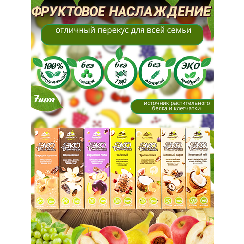 Набор натуральных батончиков "Фруктовое наслаждение", 7 шт. по 45 г, без сахара, Алтай-Эко Продукт