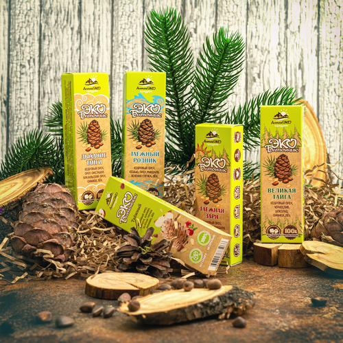 Набор натуральных батончиков "Тайга", 6 шт. по 45 г, без сахара, Алтай-Эко Продукт