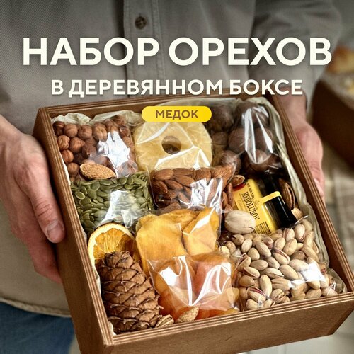 Подарочный набор из орехов и сухофруктов "Медок", 1300 гр.