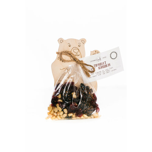 Цукатно-ореховая смесь "Привет от мишки" (Цукаты из сосновой шишки, цукаты из клюквы, кедровый орех) Внутри инструкция по созданию игрушки. 70 гр. (На дереве)